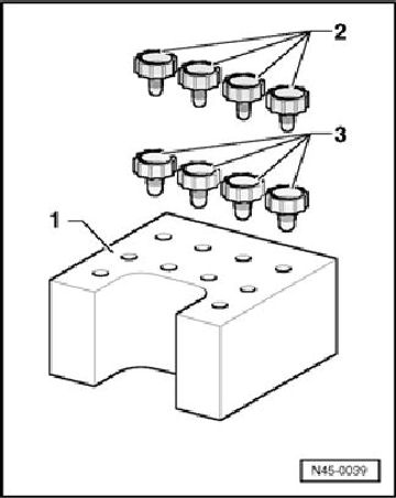 - Insert brake pedal depressor VAG 1869/2 between brake pedal and driver's seat. Depress the brake pedal by at least 60 mm.