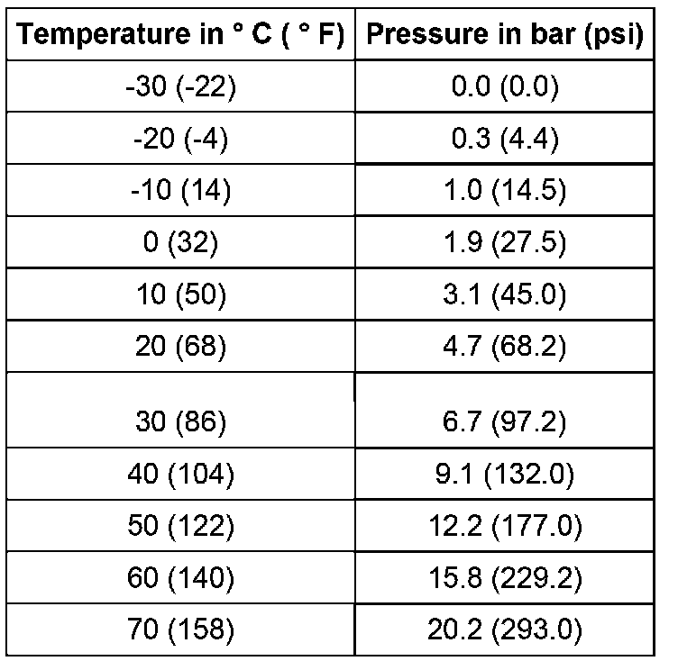 In a partially charged refrigerant container, refrigerant gas comes to the surface, which under particle formation becomes fluid. This occurs under pressure and is know as gas pressure. Similar to R-12 refrigerant, the gas pressure of R-134a is temperature dependent.