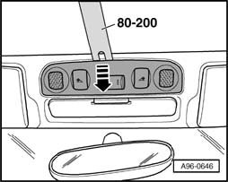 - Use lever 80-200 to carefully pry rear edge of interior light out of windshield frame -arrow-.