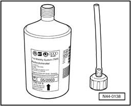 Old tire sealant or remainder of tire sealant must not be mixed with other fluids or disposed of. Follow proper disposal instructions.