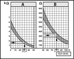 - 30 degrees C is in area A and corresponds to a resistance of 1.5 to 2.0 k Ohms
