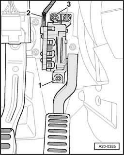 Removing and installing accelerator pedal module with Throttle Position (TP) sensor -G79- and Accelerator pedal position sensor 2 -G185-