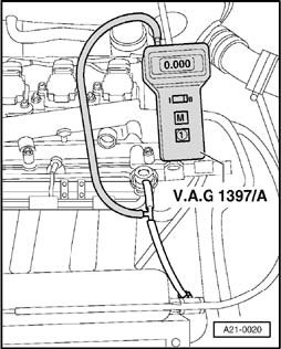 - Specified value on V.A.G 1397 A : 1.700 to 1.900 bar positive pressure