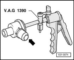 - Connect vacuum pump V.A.G 1390 to charge air pressure bypass valve.