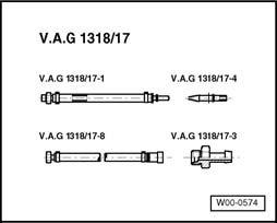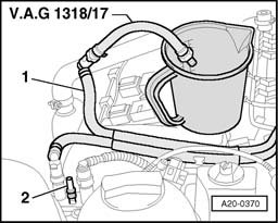 - Connect adapter (V.A.G 1318/17) to engine fuel return line and hold in a measuring container.