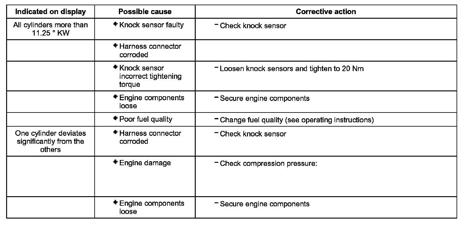 - Check knock control in display fields 1 to 4.