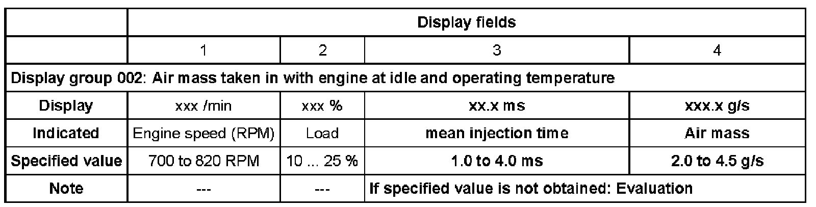 - Check specified values for load detection in display fields 3 and 4.
