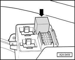 - Disconnect power supply relay (arrow) below left cover at bulkhead.