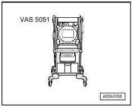 - Connect VAS5051 tester, Vehicle Diagnostic, Testing and Information System VAS 5051, Connecting and Selecting Functions and select vehicle system "01 - Engine electronics". Engine must run at idle.