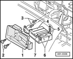 - Unscrew the four mounting screws -6- (2 Nm) at left and right at control module for navigation with CD drive -7-, and remove it from the installation frame -4-.