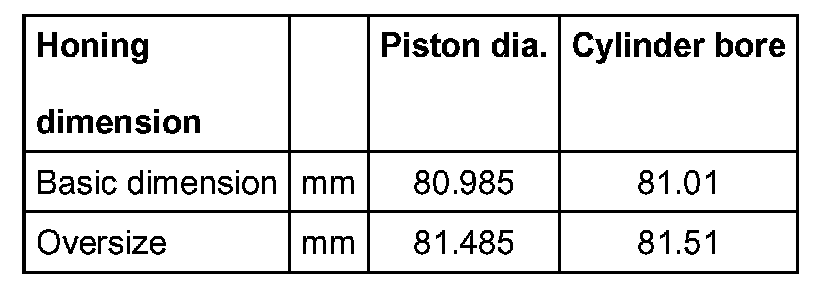 Piston and Cylinder Dimensions