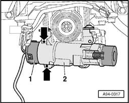 - Disconnect electrical connection -1- at ignition/starter switch.