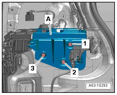 - Install the rear guide - A - onto the lateral guide and tighten the bolts in the following sequence: - 1 through 3 -.