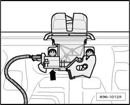 The rear lid contact switch - arrow - is located in the rear lid lock and cannot be replaced separately if faulty.