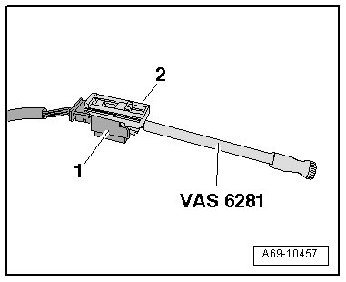 - If applicable, connect the (VAS 6281) - item 2 - to the side airbag electrical connector - 1 -.
