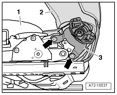 - Remove the bracket - 3 - on the outer side of the backrest.