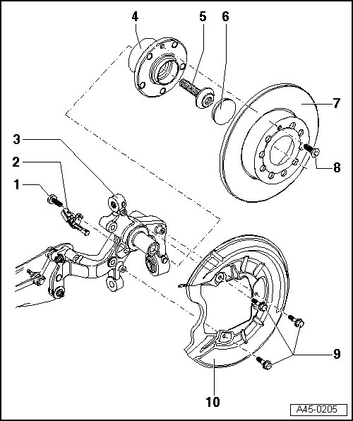 • Removing and installing, refer to => [ Speed Sensor at Rear Axle with Front-Wheel Drive ] Speed Sensor at Rear Axle With Front-Wheel Drive