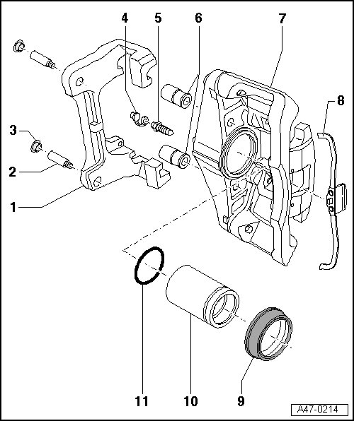 • Apply thin coat of lithium grease (G 052 150 A2) to brake cylinders, pistons and seals.