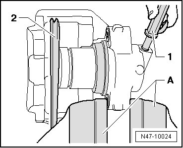 - Press piston into brake caliper using piston resetting tool - 1 -.