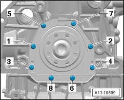 - Tighten the bolts - 1 through 8- in the sequence shown: