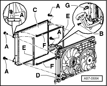 - Remove the radiator fan - B - with the mount (for example on 2.0L gasoline vehicles).