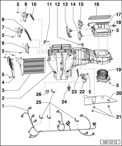 Different versions in vehicles with manually and automatically regulated A/C system. Refer to Electronic Parts Catalog (ETKA).