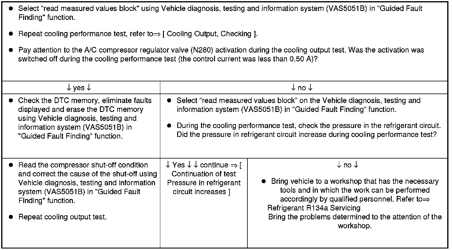 • Additional information regarding the pressure in the refrigerant circuit can be found in "Guided Fault Finding" using Vehicle diagnosis, testing and information system (VAS5051B) in "Guided Fault Finding" function.