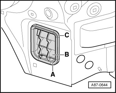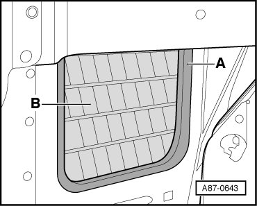 • On the Audi A3 Cabrio, the ventilation openings - B - in the rear lid trim - A - must not be covered by any objects when the rear lid is closed.