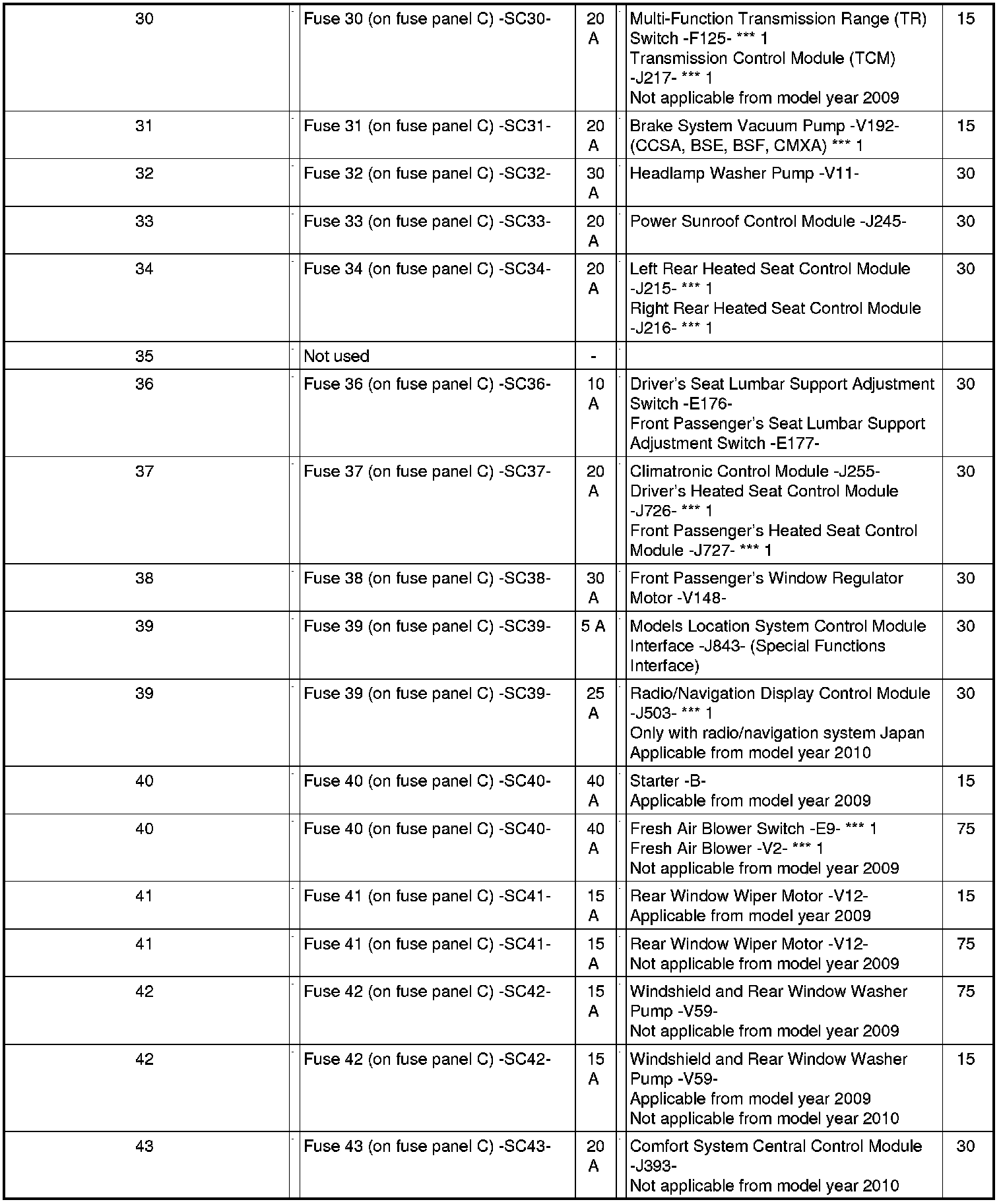 Position Of Fuses On Fuse Panel
