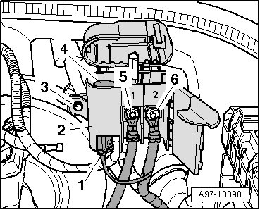 - Remove the bolt - 3 - and remove positive pole pick-up - 2 - with suppressor from retainer.