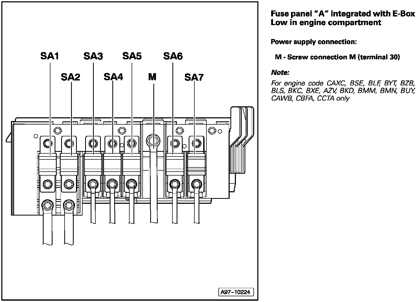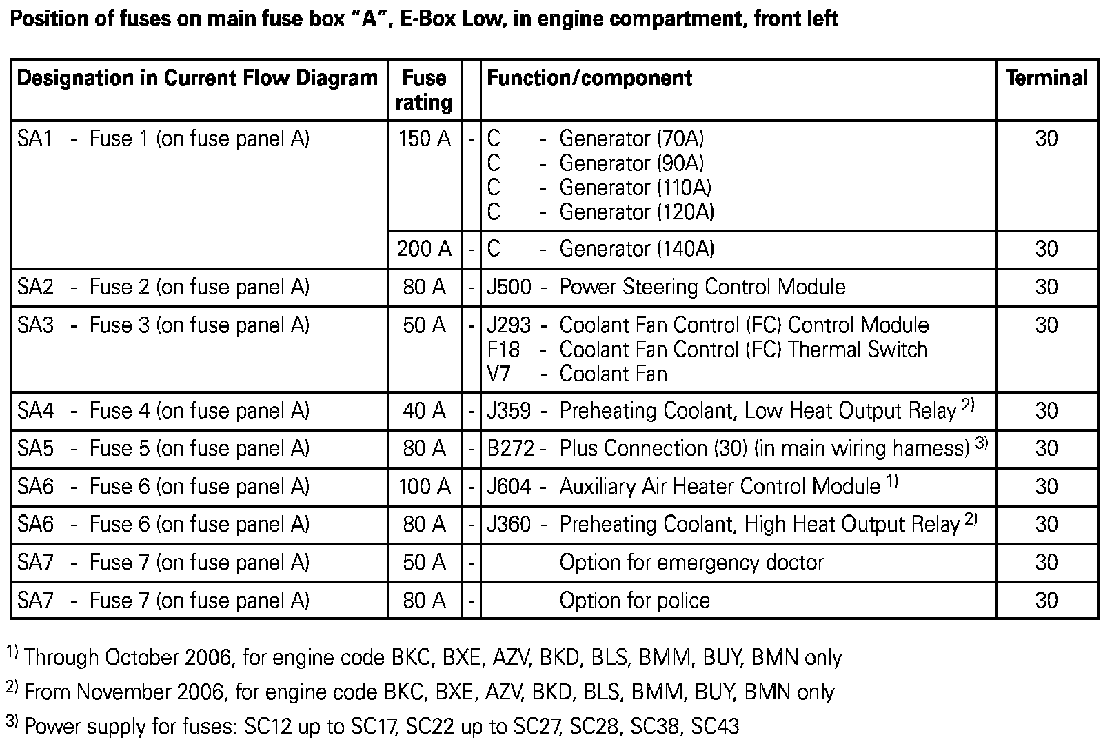 Position Of Fuses On Main Fuse Box "A", E-Box Low, In Engine Compartment, Front Left: