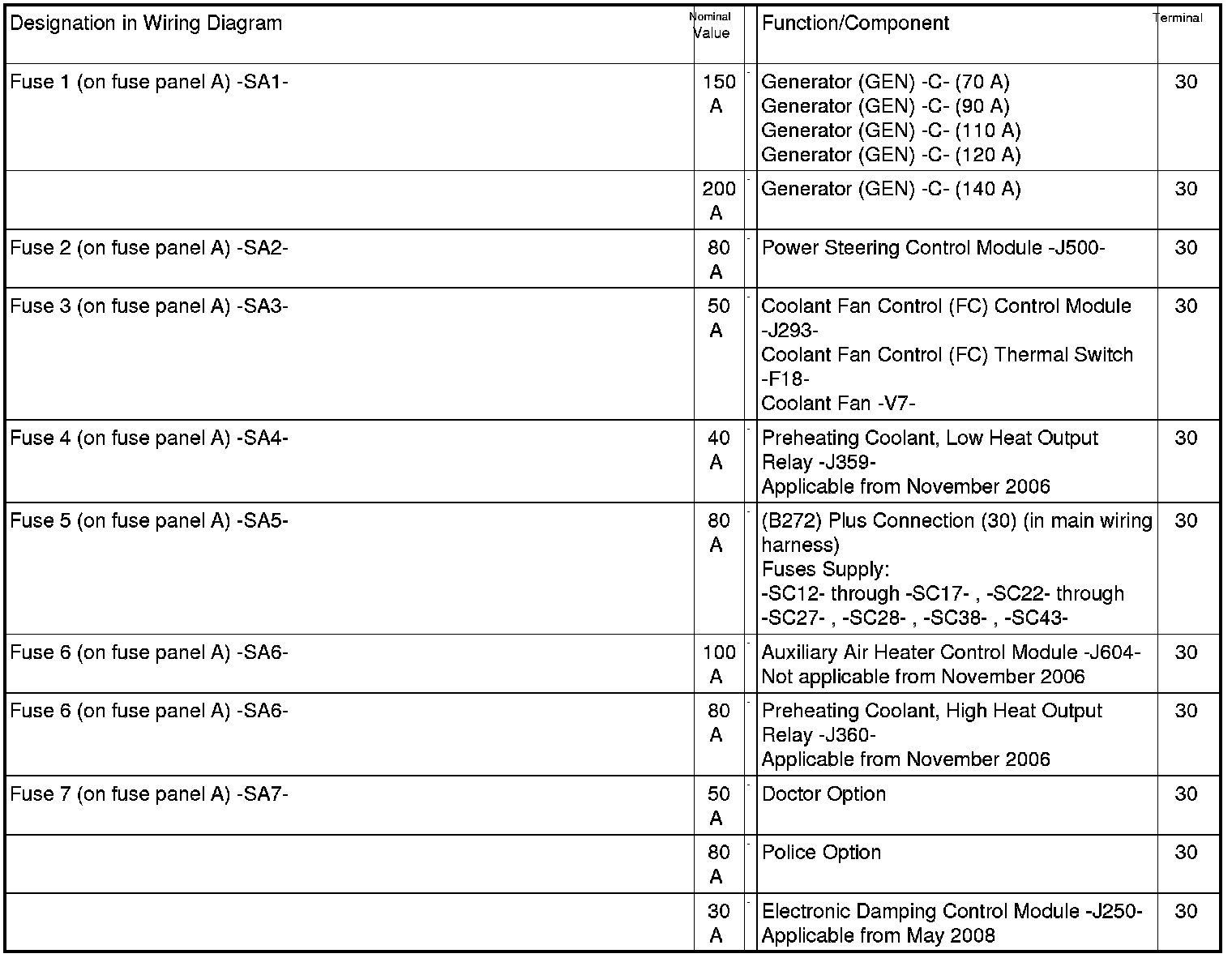 Fuse Arrangements Electronics Box Low, from MY 07