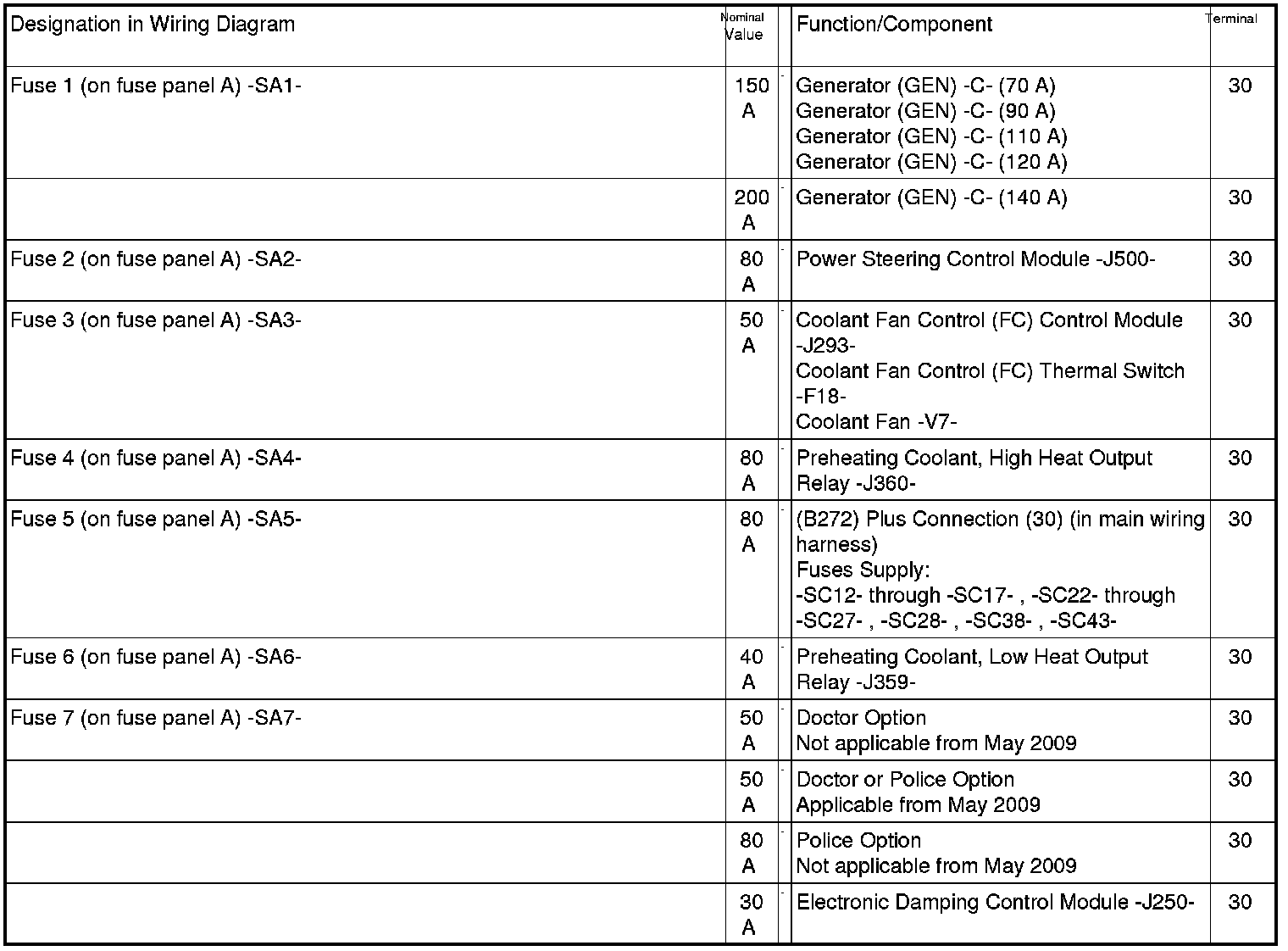 Fuse Arrangements Electronics Box Low, from November 2008