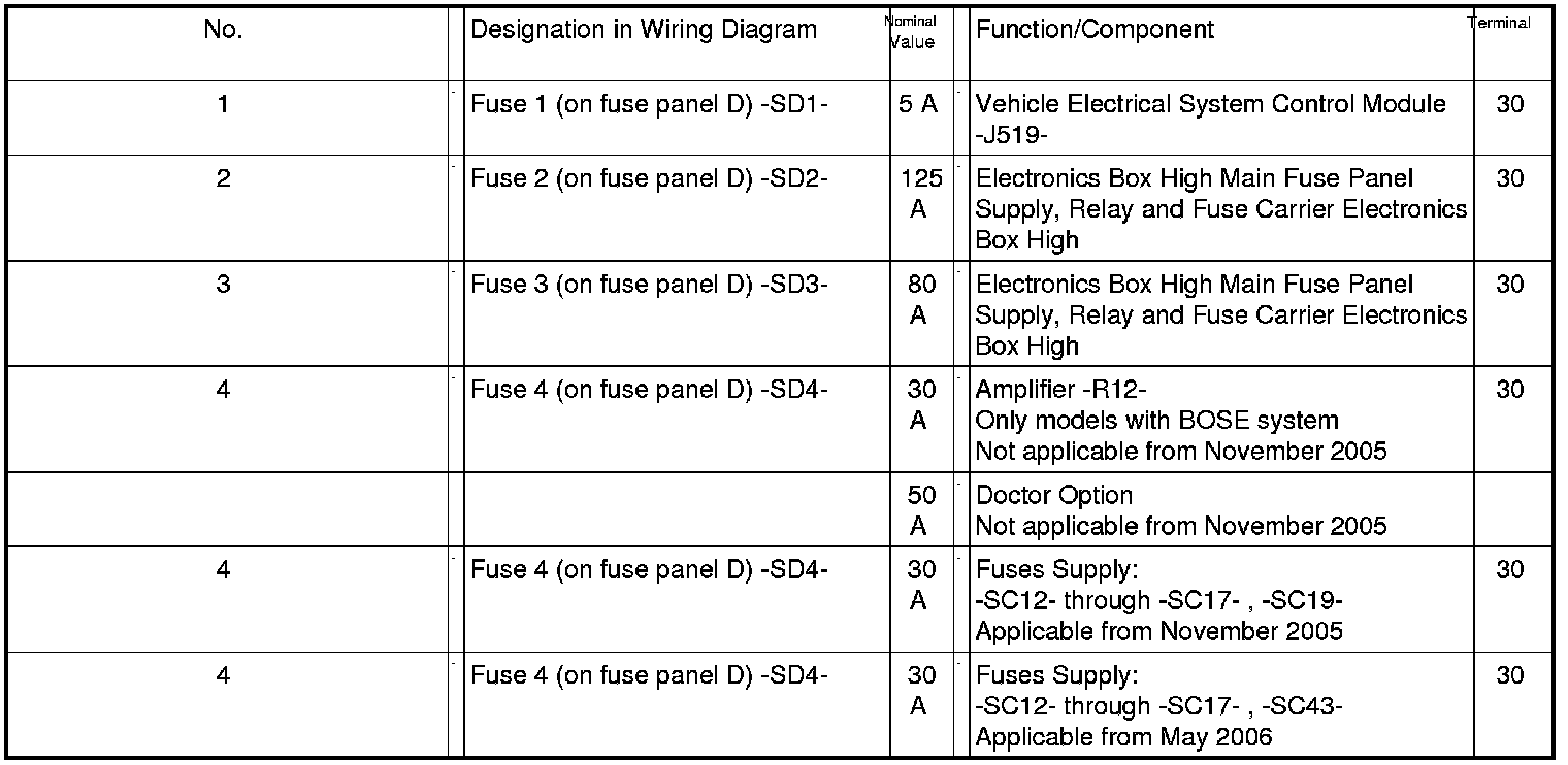 Position Of Fuses On Main Fuse Panel, from MY 06