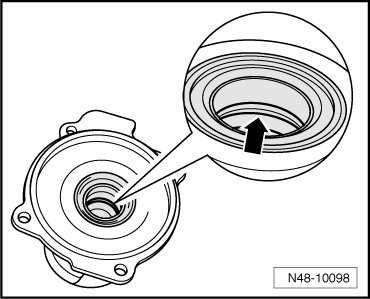 - Coat the gasket - arrow - in the cover with grease (G 052 168 A1). Only apply a thin film of it.