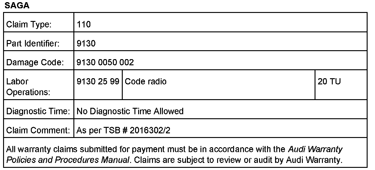 When procedure applies to vehicles under warranty, use the table.