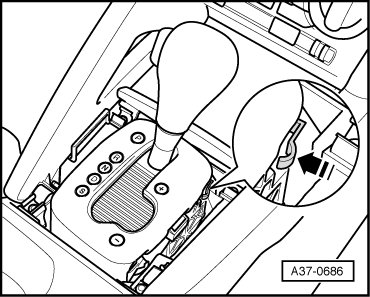If the selector lever still cannot switch out of "P", the emergency release of the solenoid must be executed. If the selector lever is then switched back into "P", this is locked again in the position "P".