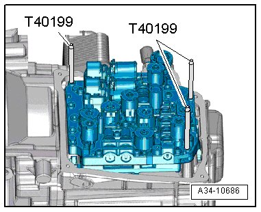 • Without the (T40199), the long sensor arm of the mechatronic will be damaged during removal.