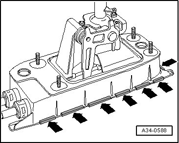 - Using a screwdriver, press bearing shell notches - arrows - in direction of shift lever guide bearing; break of notches if necessary.