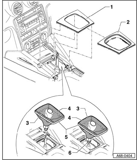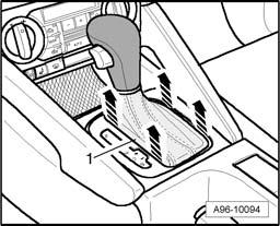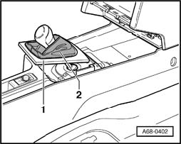 - Remove cover - 1 - with selector lever boot - 2 - upward.