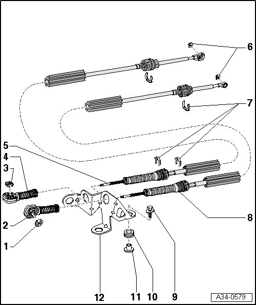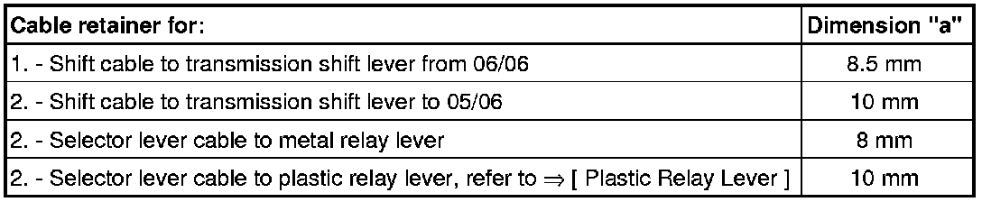 • Release to adjust selector mechanism => [ Release the cable retainer for the selector and shift cables as follows: ] Adjustments