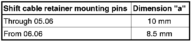 Starting in 02.2006, Smaller Bolt Diameter for the Shift Cable Retainer