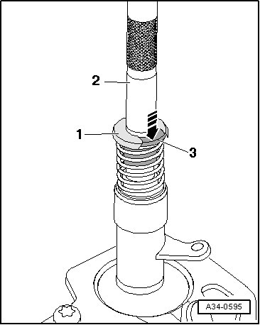 - Press spacer bushing - 3 - in direction of - arrow -.