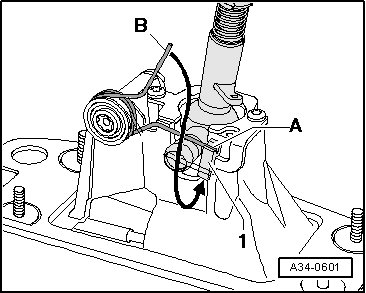 - Insert the leg - A - of the spring into the guide - 1 - from above.