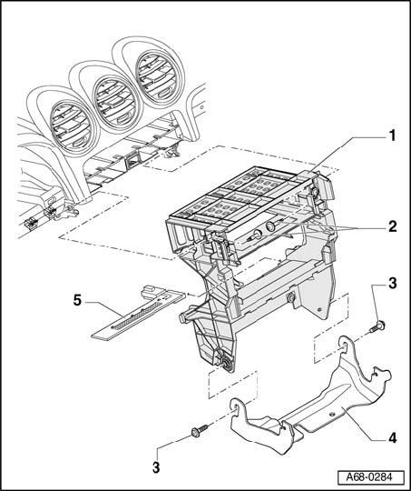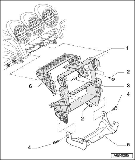 - Remove bolts on instrument panel center section - 2 - (4x) and remove console.