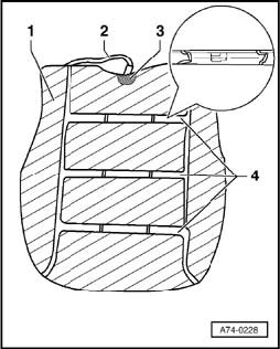 - Align heating element - 1 - on seat surface, remove protective foil and glue heating element to cushion.