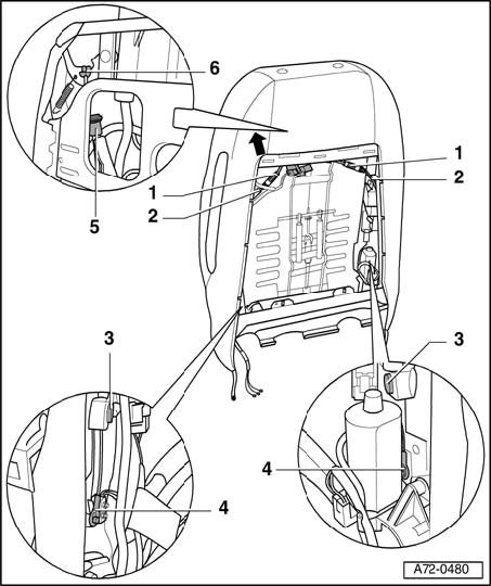NOTE: For vehicles up to 05.02, VIN: 8H 3K 002 450: To prevent malfunctions of headrest and seatback adjustment, apply a cable tie - 7 -.