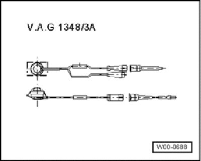 - Connect remote control V.A.G 1348/3 A with connection V.A.G 1348/3-3 to contact - 1 - using an adapter cable from connector test set V.A.G 1594 C.