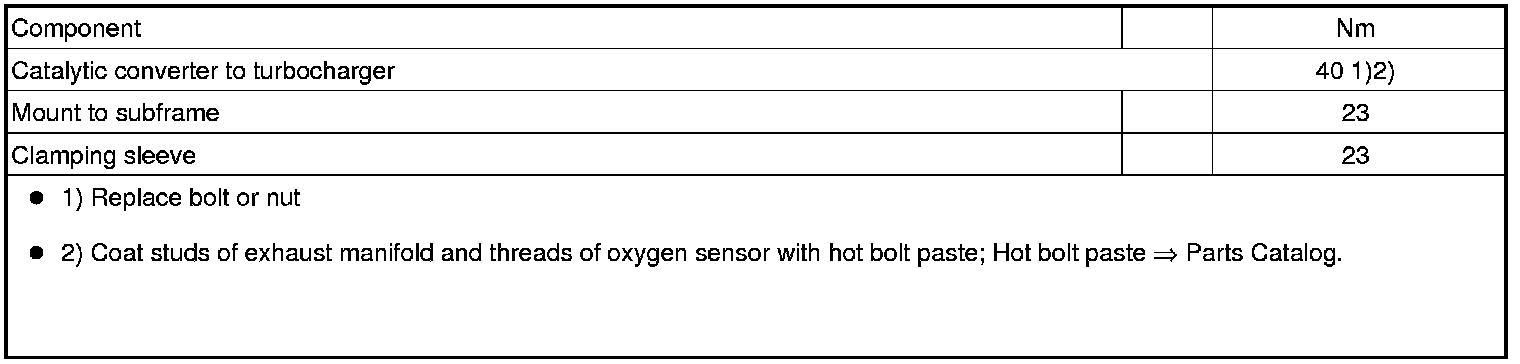 - Remove nut - arrow - at catalytic converter/turbocharger from below.