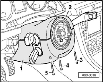 - Separate top trim -2- for steering column switches from bottom trim -1- and remove both parts.